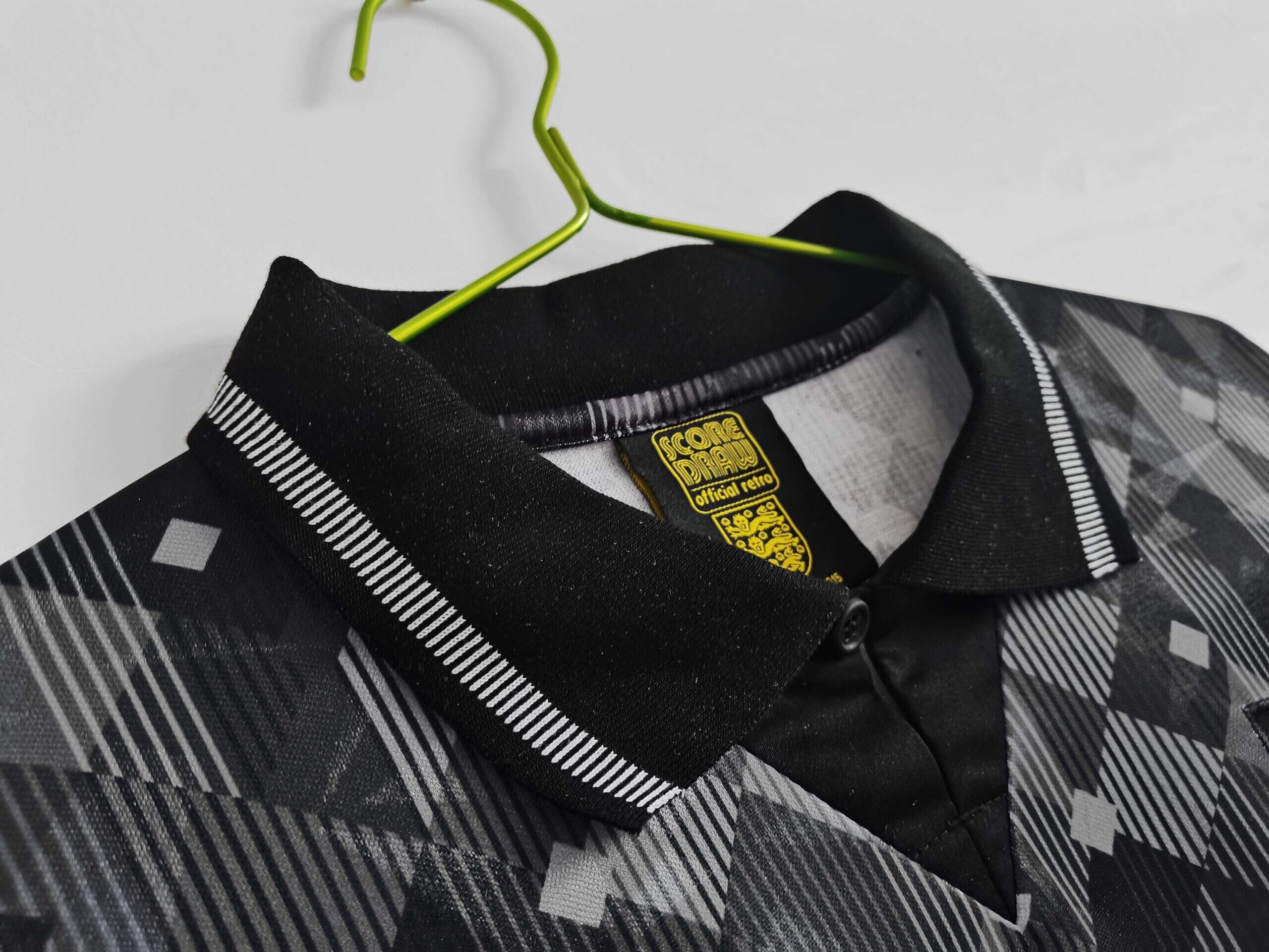 Celebrate the unique flair of English football with the 1990 England Black Retro Kit. This standout jersey features a sleek black base with contrasting white and red details, offering a distinctive look that departs from traditional England kits while still reflecting the team’s competitive spirit.